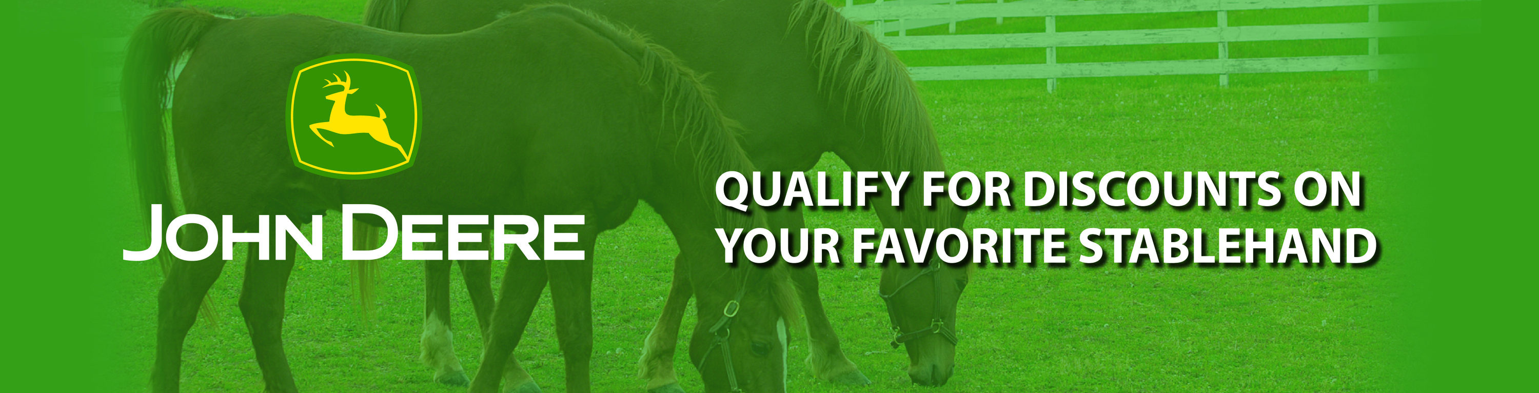 We’ve been the official equipment supplier to the equine industry since 2001 but John Deere, the legendary blacksmith, fit his first horseshoe over 184 years ago. These exclusive equipment discounts are our way of letting you know horsepower continues to be our passion, too.