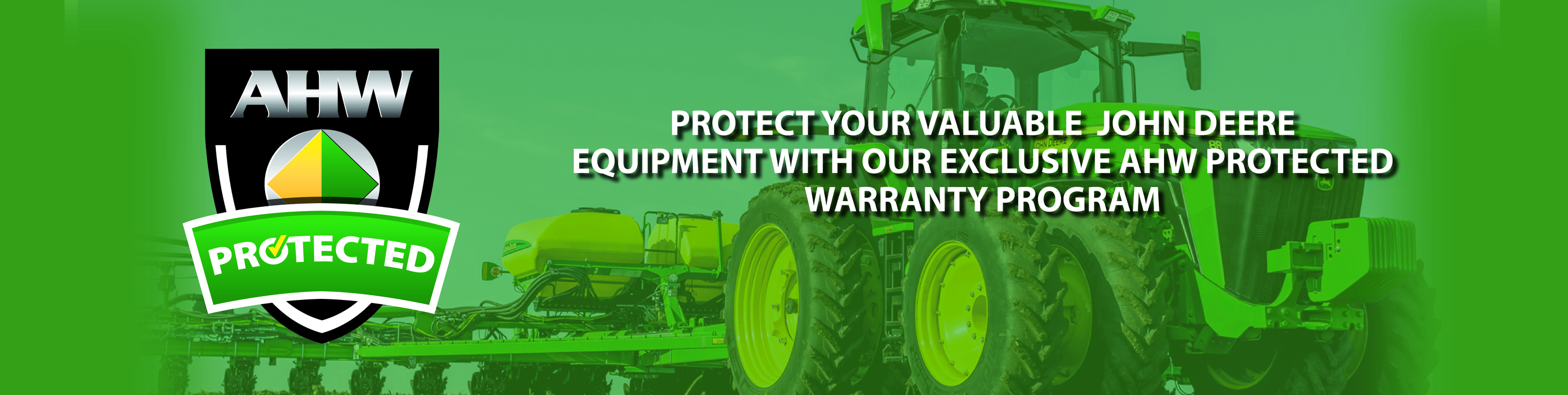 Your John Deere equipment is a significant investment...protect it with an extended warranty from AHW. Whether it's a new compact tractor or a pre-owned combine, an AHW Protected warranty plan delivers peace of mind when the equipment has failures or breakdowns.