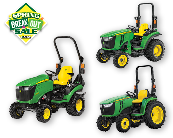 Spring is coming—get ready with unbeatable savings! The Spring Break Out Event delivers the versatile 1025R Tractor, 120R Loader, and 60D AutoConnect™ Mower for only $248/month. With 1.9% financing for up to 84 months, this package is your all‑season solution for mowing, hauling, and property prep.