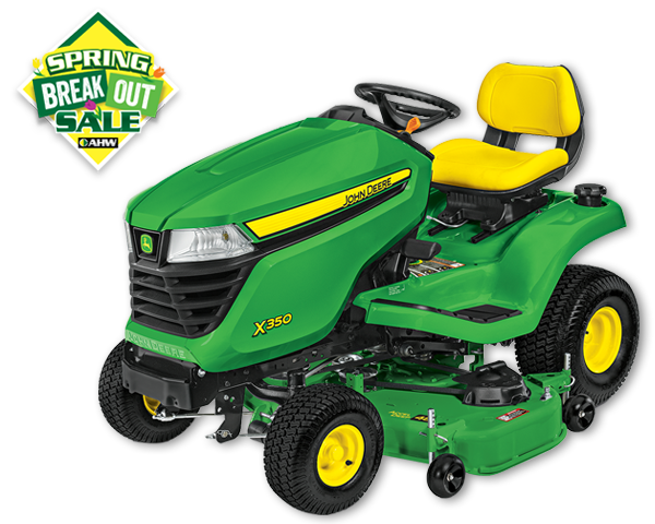Payments as low as $74/Month*Get your lawn spring‑ready with the X300 Series during our Spring Break Out Event. Choose the financing plan that fits your budget with 4.9% for 60 months, 0% for 36 months, or 0% if paid in full within 9 months. With payments starting at just $74/month, it’s the perfect time to prep your yard before the first mow.